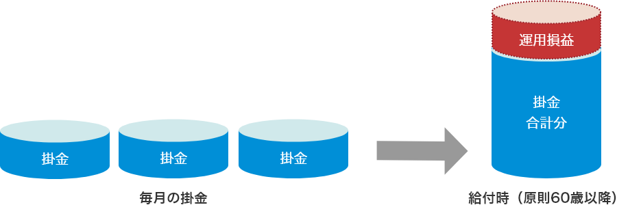 iDeCoとは、加入者が拠出した掛金と、加入者が運用することによって得られる運用損益との合計額をもとにして、将来、給付される金額が決定される国の法律に基づいた制度です。