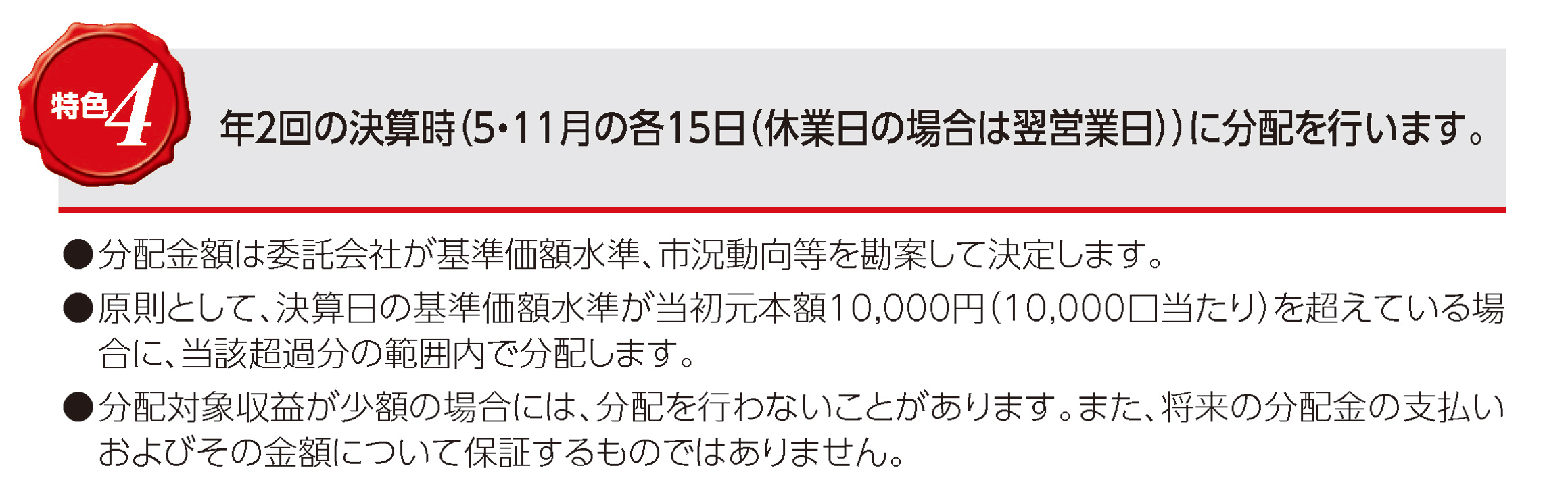 目論見書における分配方針に関する記載については、一部ファンドでは具体的に記載していたものの、多くのファンドでは画一的な記載であったことにより「わかりにくい」「不透明」等のお声をいただくことがありました。分配方針はファンドの商品性の一部であり、分配金に対するお客さまからの関心も高いことから、より分配方針に対するご理解を深めていただけるよう、目論見書における分配方針に関する記載について、各ファンドの分配方針に沿った具体的な記載内容への変更をしております。