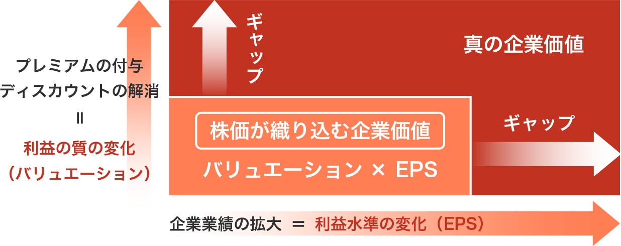 当チームが独自に予想する真の企業価値とギャップのイメージ