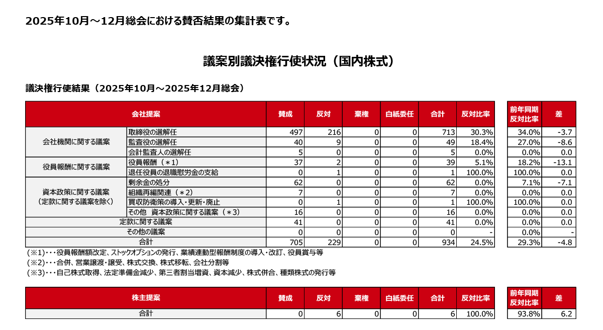 - 議決権行使結果(2024年10月-2024年12月)