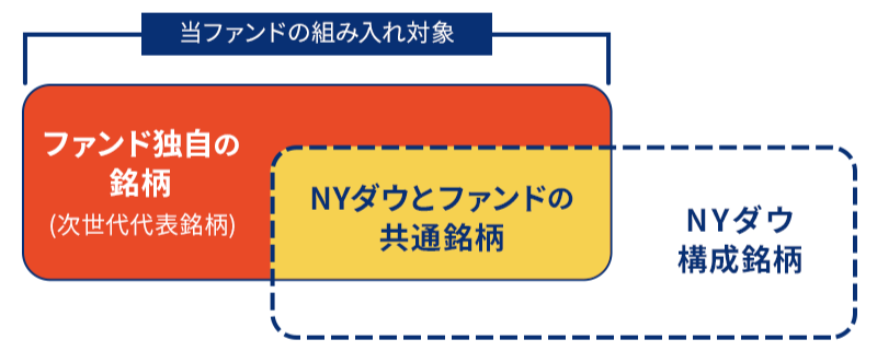 - NYダウ構成銘柄と比較して、より成長性が見込める次世代代表銘柄も組み入れ