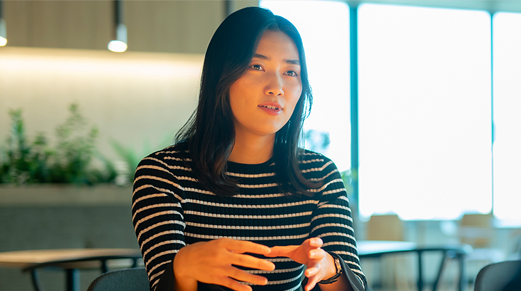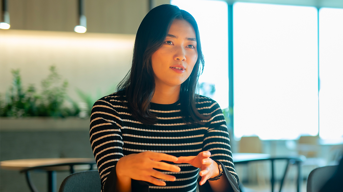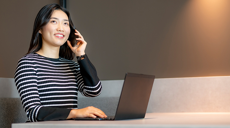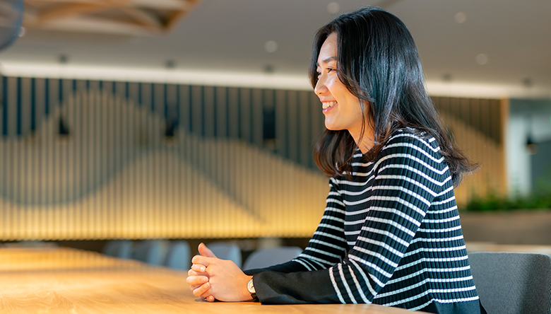 私は学生時代から「周りの人を喜ばせたい」という気持ちを原動力に、頑張れる性格です。今もお客さまに寄り添いながらお悩みを解決し、「ありがとう」と喜んでいただけることが一番のやりがいです。そのためのヒントを得られるのが、チーム内での何気ない情報交換や定例ミーティングです。チームの雰囲気を一言で表すなら、「和気あいあい」。安心できるコミュニケーションが、チーム内連携のベースになっています。