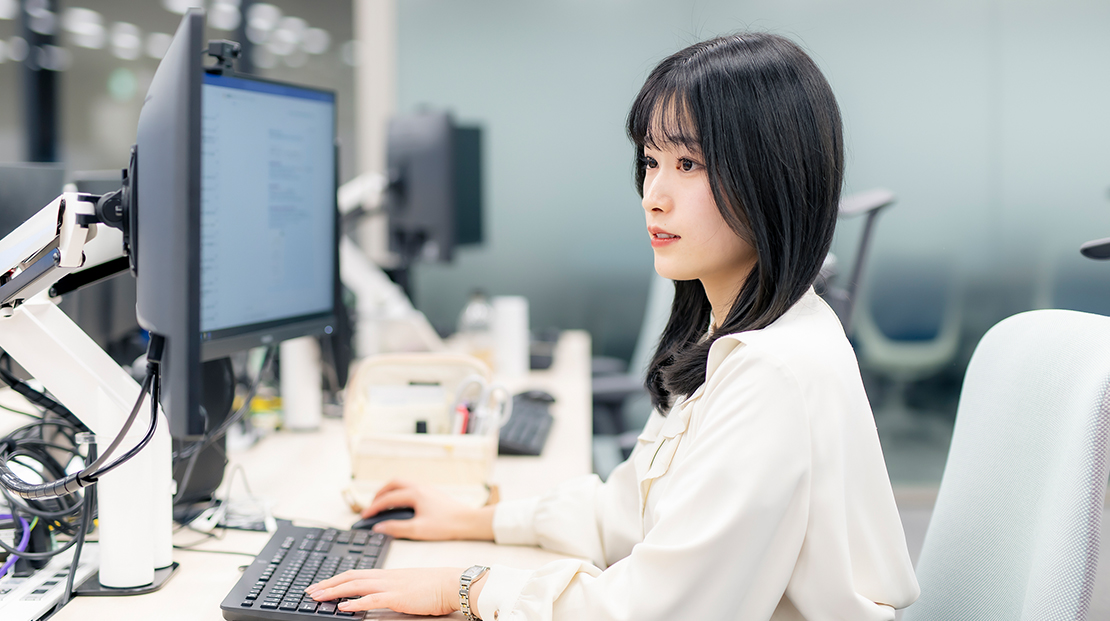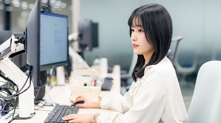 基本的に月単位の業務が多いので、自分で1ヶ月のタスク管理をしながらタイムマネジメントを徹底しています。ミーティングへの参加を重ねるごとに、必要とされる力が身についている手応えがあり、嬉しいです。正しい情報をいかに分かりやすく提示し、納得いただくか。一つひとつの契約規模も大きいため、緊張感がありますし、やりがいも感じます。今は仕事の幅を広げるチャンスだと思っているので、当社の自己啓発支援制度を活用して証券アナリストの資格取得を目指すとともに、ビジネス英語を学べる研修プログラムにも参加したいと思います。