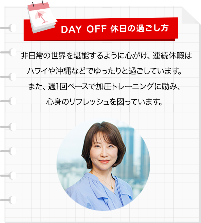 管理職に就いた当初は責任の重さに戸惑いもありましたが、プレッシャーを一人で抱え込まず、常に全力で挑戦することを心掛けています。年齢や経験に関係なく、共に働く仲間が「高いハードル」に果敢に挑む姿勢に刺激を受け、私自身も「何か学べることはないか」と常にインプットに努め、5年後、10年後に必ず差が生まれると信じて読書やアカデミックな動画の視聴を続けています。
