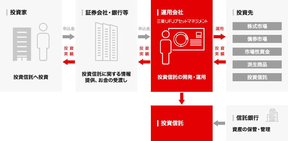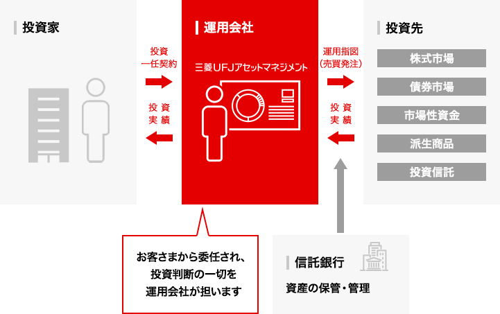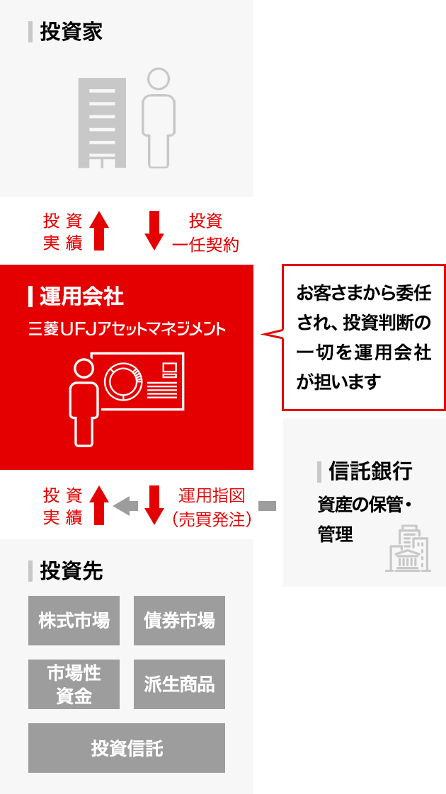 MUFGグループの一員として、日本No1、そして世界に選ばれる資産運用会社を目指しています。わたしたちは真のプロフェッショナル集団として、「安定感のある高水準の運用力」、「世界各国をカバーする商品提供力」、「スピードと質を兼ね備えたサポート力」が三位一体となった総合力で、お客さまの期待を超える“プラスα”(付加価値)を常に提供し続けていきます。
